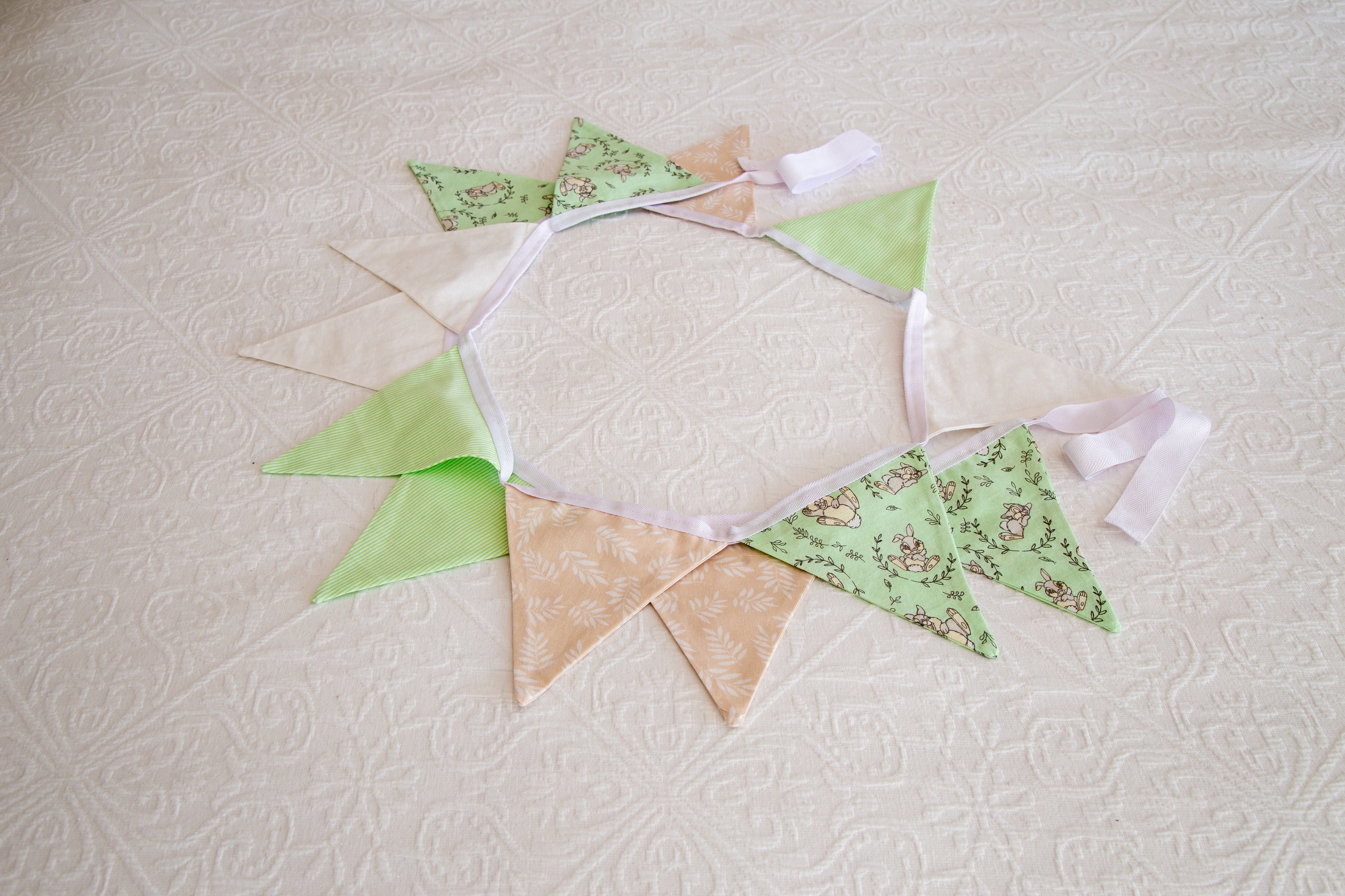 Australian handmade fabric Bunting - baby bunting in soft and bright colours suitable for children's rooms, party decor, baby showers , birthday parties ...the list is endless. Bunting is unique and one of a kind. Not reproduced.