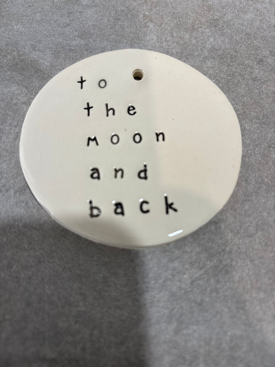 Handmade ceramic coaster - glazed with black writing. Felt on the base to protect furniture.